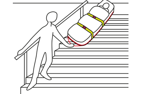 Die Evakuierungshelfer kommen in Bereichen, bei denen ein Patiententransport mit den Pflegebetten nicht möglich ist, zum Einsatz