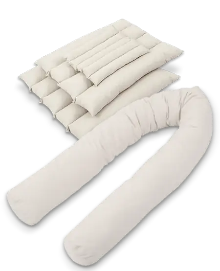 Um den vielfältigen Anforderungen in medizinischen Einrichtungen gerecht zu werden, bieten wir Lagerungskissen in verschiedenen Varianten an: von Standardformen über Rippenkissen für die Mikrolagerung, Kissen mit Fahne für die optimale Seitenlagerung, bis hin zu Kissen mit Ausschnitten für die Freilagerung sensibler Körperbereiche, Gesäßkissen sowie flexible Lagerungsschläuche. Für alle Kissenformen stehen 95°C waschbare PU-Hygienebezüge zur Verfügung, die sich ideal für die Wischdesinfektion eignen und somit den hohen Hygienestandards in Pflegeumgebungen entsprechen.