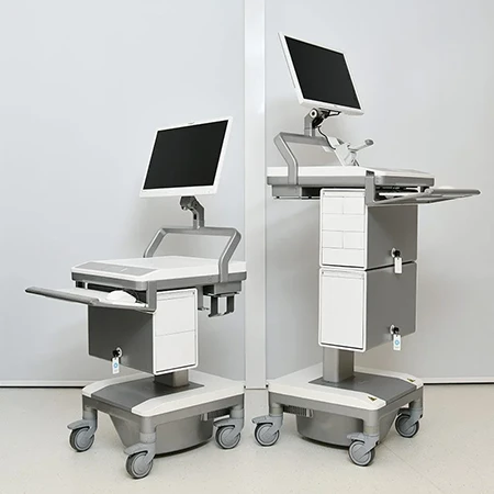 Die T7-Computerwagen bieten Leistung, ergonomische Verstellbarkeit und Haltbarkeit. Diese mobilen Säulenwagen stellen sich den heutigen IT-Herausforderungen im Gesundheitswesen und bieten Pflegekräften eine einfache und bequeme Möglichkeit, den ganzen Tag über vernetzt zu bleiben.