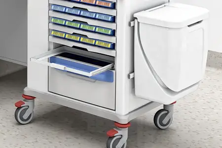 Abwürfe und Mülleimer: Integrierte Abwurfbehälter für gebrauchte Materialien und Mülleimer sind für die Aufrechterhaltung der Hygiene unerlässlich. Sie sollten so konzipiert sein, dass sie leicht zu leeren und zu reinigen sind.