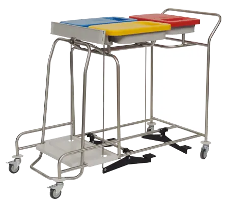 Unsere hochwertigen Wäschesammler bieten eine effiziente und hygienische Lösung für die Sammlung von Schmutzwäsche und Abfall in verschiedenen Bereichen von Krankenhäusern, Pflege- und Seniorenheimen. Das solide Gestell aus poliertem Edelstahl mit einem Durchmesser von 20 mm verspricht Langlebigkeit und Zuverlässigkeit für den täglichen Gebrauch.