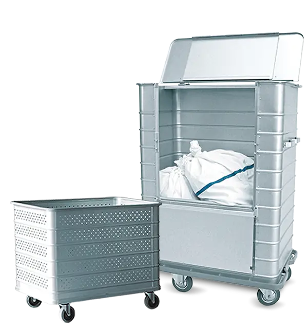 Unsere Reihe von Logistikwagen für die Wäschever- und entsorgung ist speziell für den Einsatz in Kliniken, Krankenhäusern, Pflegeheimen und Seniorenzentren konzipiert. Diese vielfältige Produktlinie umfasst Wäschewagen mit Stahlgestell, komplett aus Aluminium gefertigte Wäschewagen sowie praktische Federbodenwagen. Alle Modelle zeichnen sich durch ihre Desinfizierbarkeit, Langlebigkeit und leichte Handhabung aus.